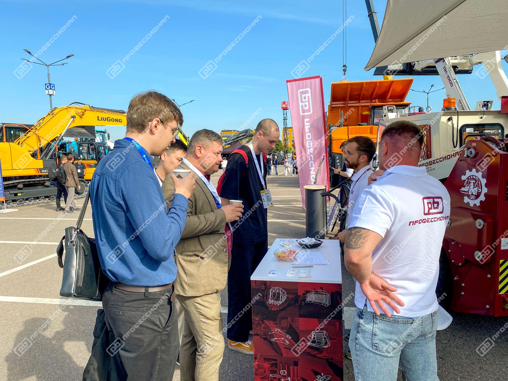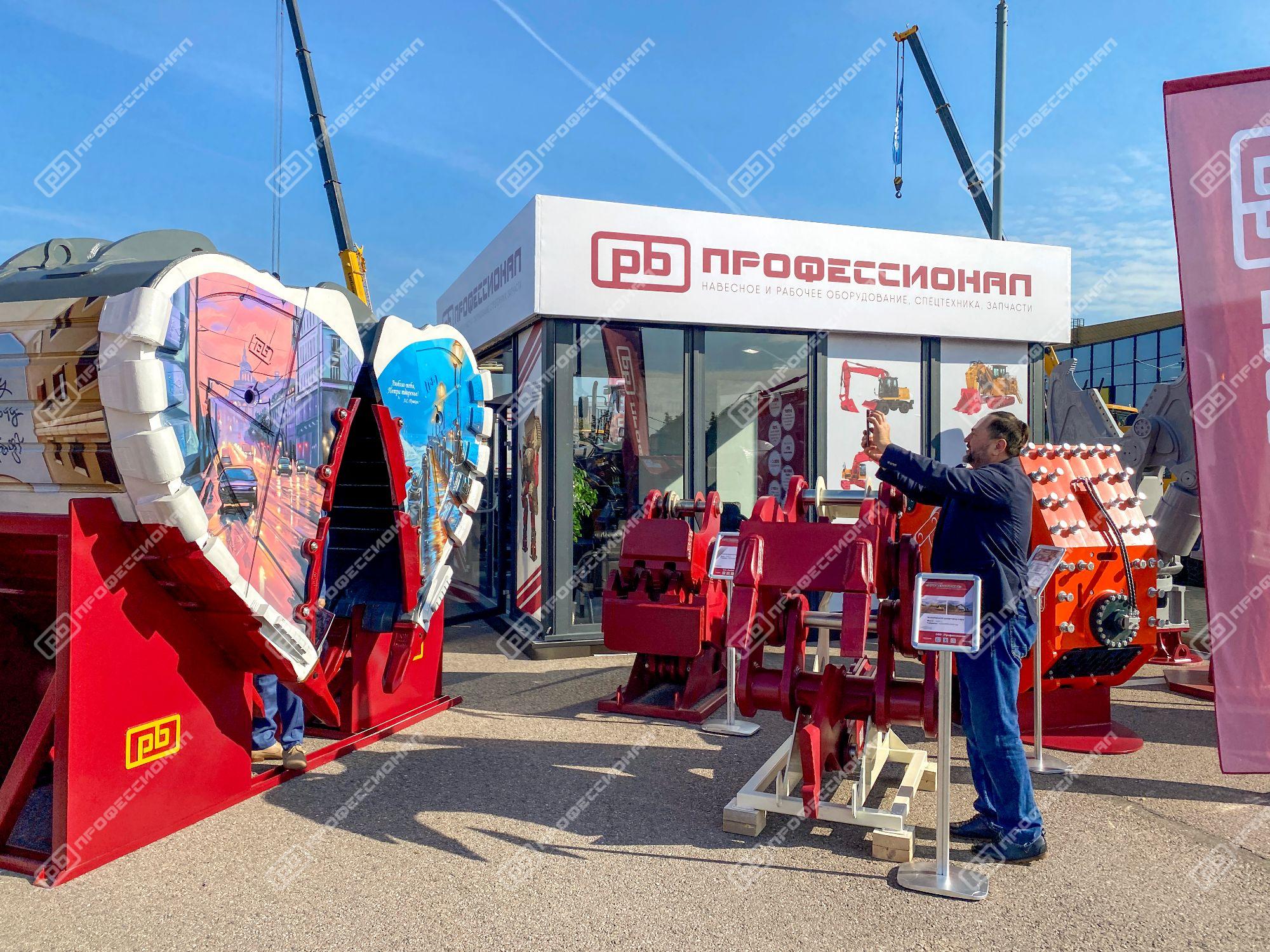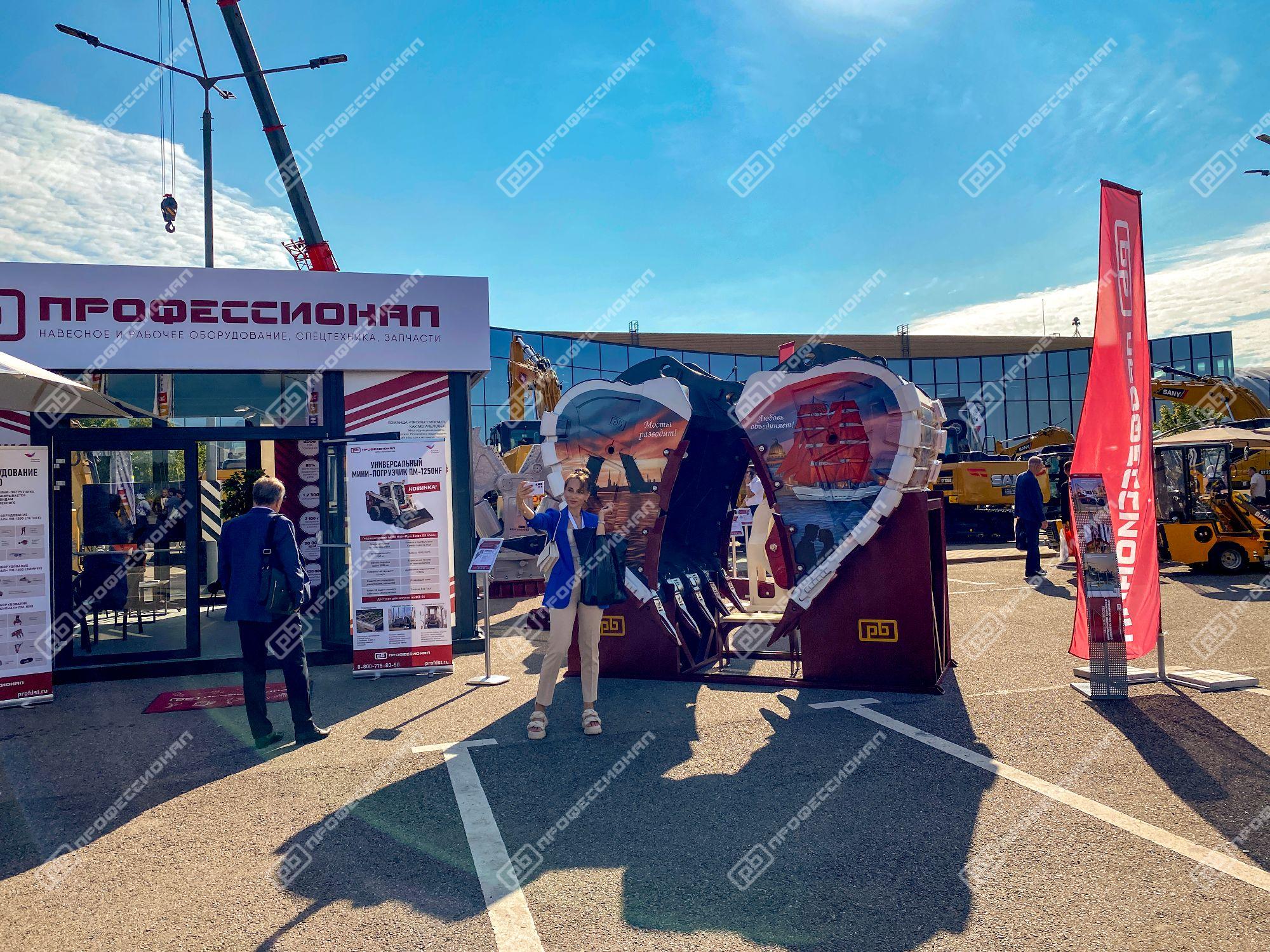Мы традиционно постарались оформить наш стенд ярко и интересно, привезли много полезного для участников выставки – спецтехнику и навесное оборудование, а также подготовили сюрприз – необычную фотозону, представляющую собой конструкцию из ковшей нашего производства.