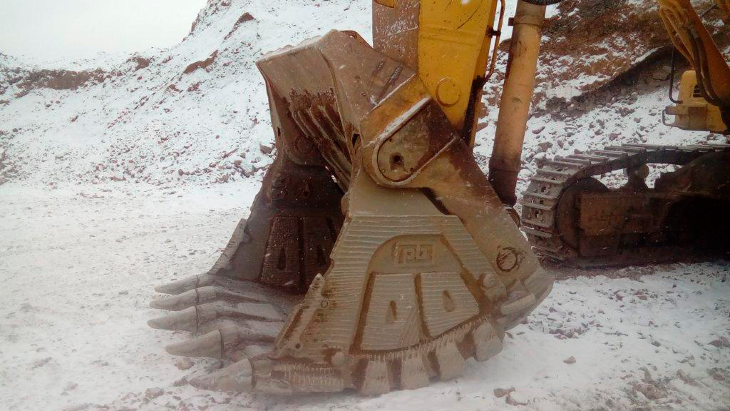Челюсть усилена коронками MTG MA120E1 и эксплуатируется на экскаваторе Komatsu PC-750-7 в Алданском районе Республики Саха(Якутия). За время эксплуатации заказчик не было нареканий к поставленному оборудованию. .
