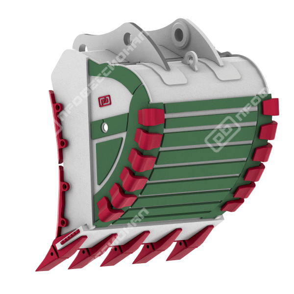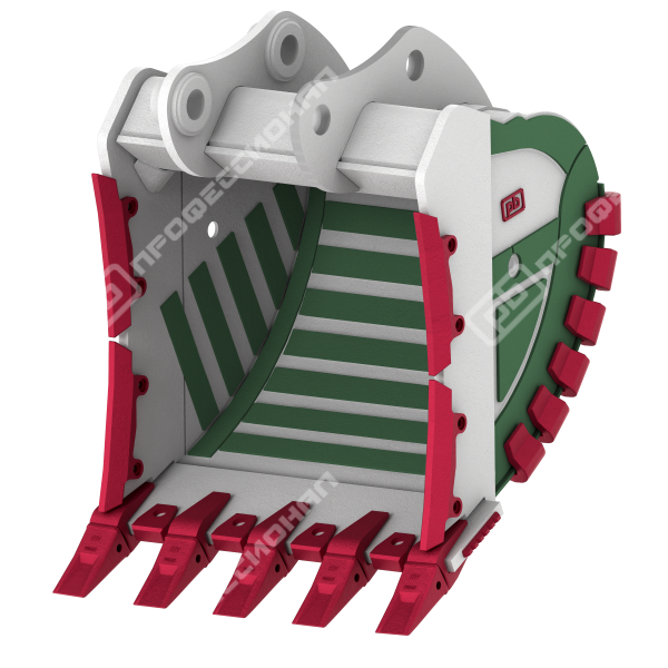 Обратите внимание, что мы также производим скальные экстраусиленные ковши: у них есть четыре протектора (защита боковин ковша), дополнительная внутренняя футеровка дна и боковины из износостойких плит CCP (аналог Overlay), а также элементы из белохромистого чугуна (БХЧ).