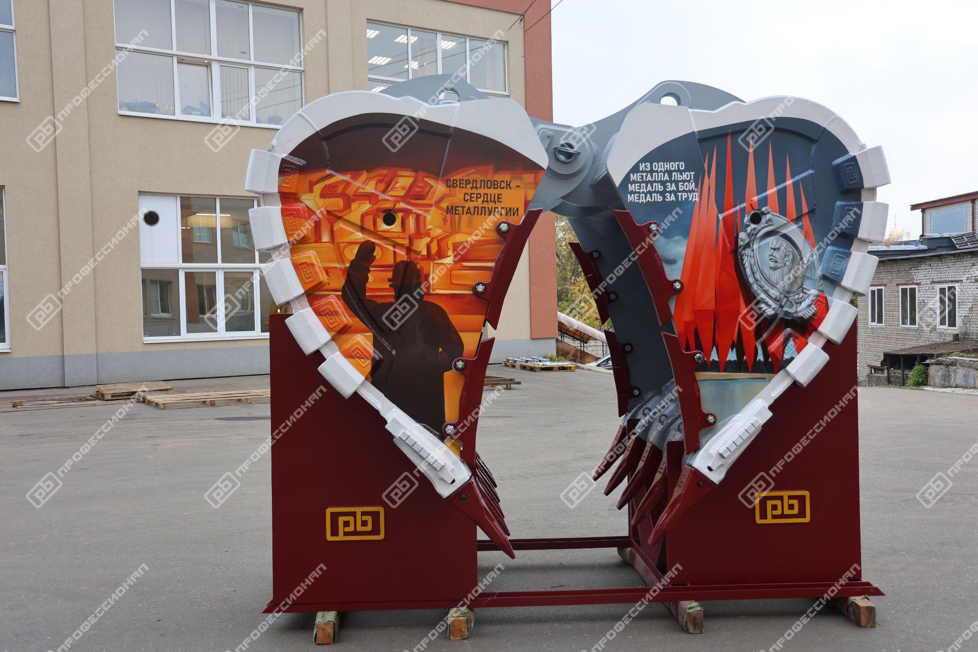На нашем стенде вы сможете увидеть уникальную композицию из двух скальных сверхусиленных ковшей для экскаватора SANY SY500H. Их объём – 2,8 куб.м. Эти ковши, расписанные талантливым художником-граффитистом, соединяются воедино, образуя сердце. Это не просто экспонат — это символ любви к нашему делу и к городу, который нас вдохновляет.