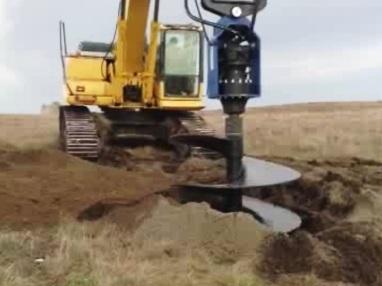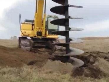 На этой неделе в Новосибирской области запущен в работу бур Hydra T8000 с диаметром шнека - 1500 мм. Бур работает на экскаваторе Komatsu PC 360; глубина бурения составляет 5 м.
